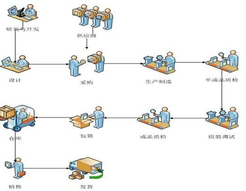 下圖為“高低溫實(shí)驗(yàn)箱”生產(chǎn)工藝流程,從生產(chǎn)計(jì)劃——組織材料——實(shí)施生產(chǎn),然后是半成品——質(zhì)檢驗(yàn)收——組織總裝,最后是成品驗(yàn)收數(shù)量——包裝裝箱——試驗(yàn)箱出倉(cāng)。