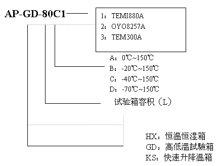 | 溫度范圍 | A:0℃;B:-20℃;C:-40℃;D:-60℃;F:-70℃~+150℃ | ||||||